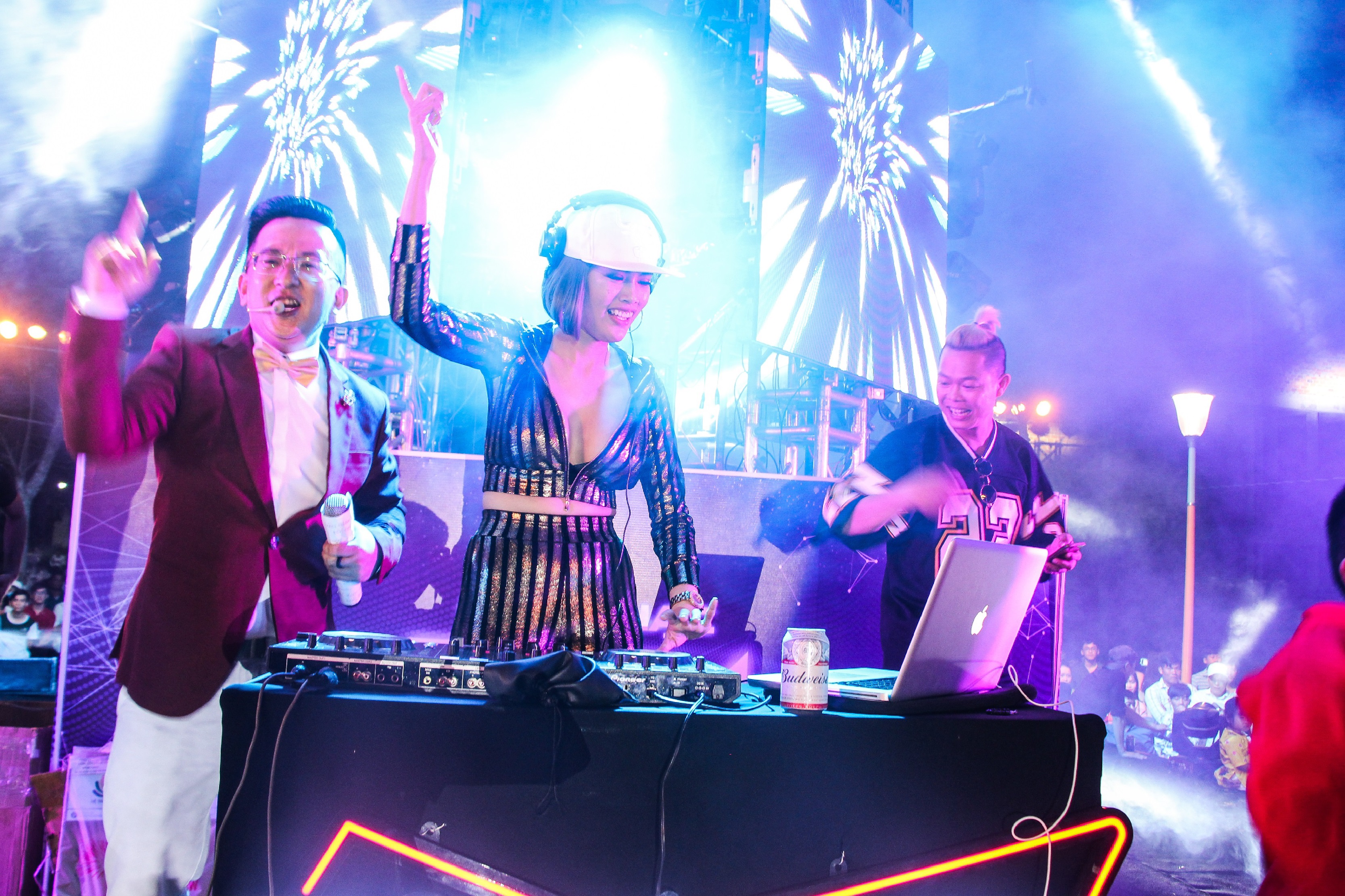 Sân khấu ngoài trời với màn hình led bốn phía giúp cho các nghệ sĩ biểu diễn dễ dàng giao lưu, tương tác cùng khán giả bên dưới. Bên cạnh những bài hát đón năm mới đầy cảm xúc của ca sĩ, những tiết mục DJ sôi động cũng mang lại giây phút bùng nổ hết mình cho khán giả.