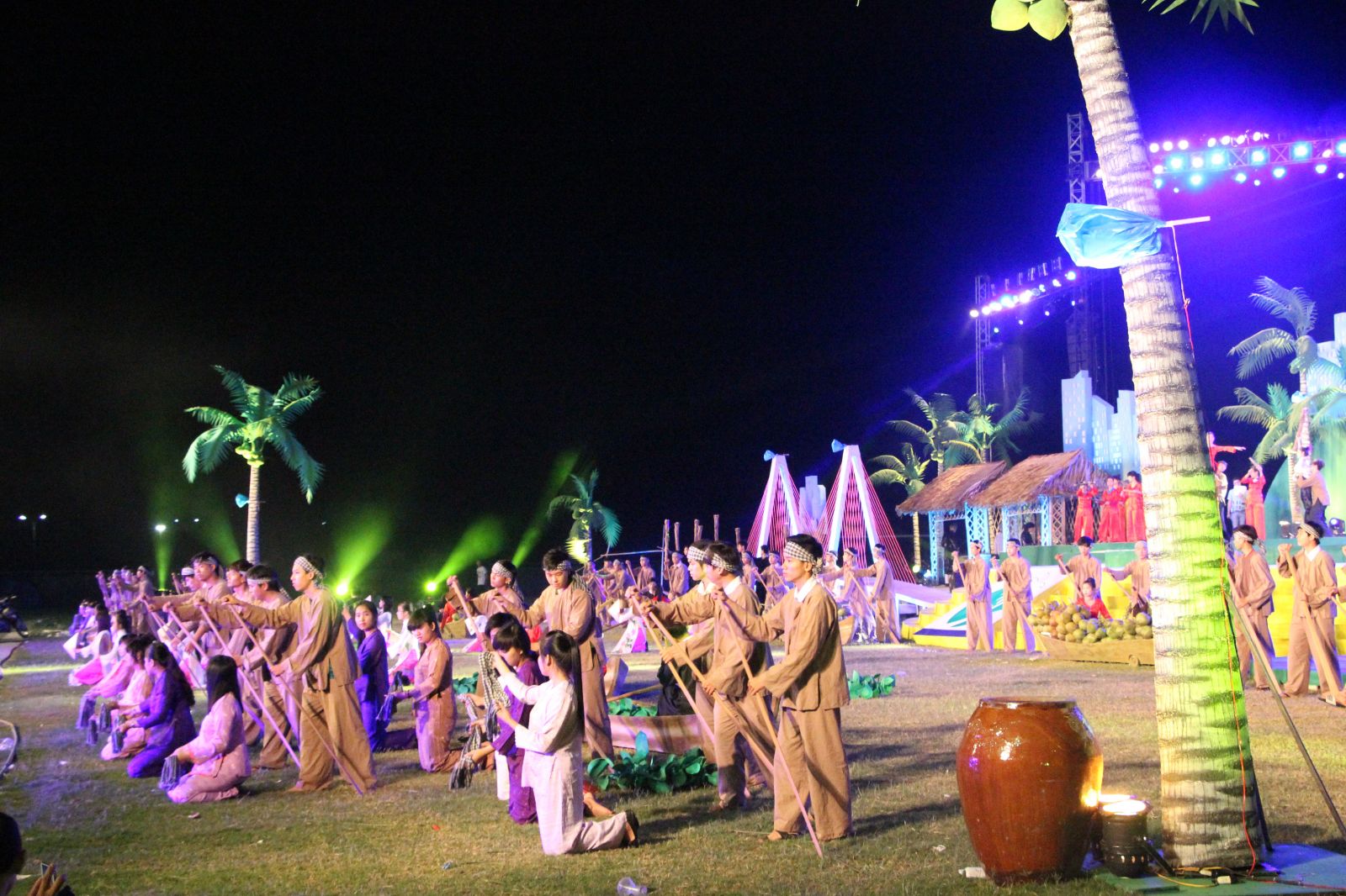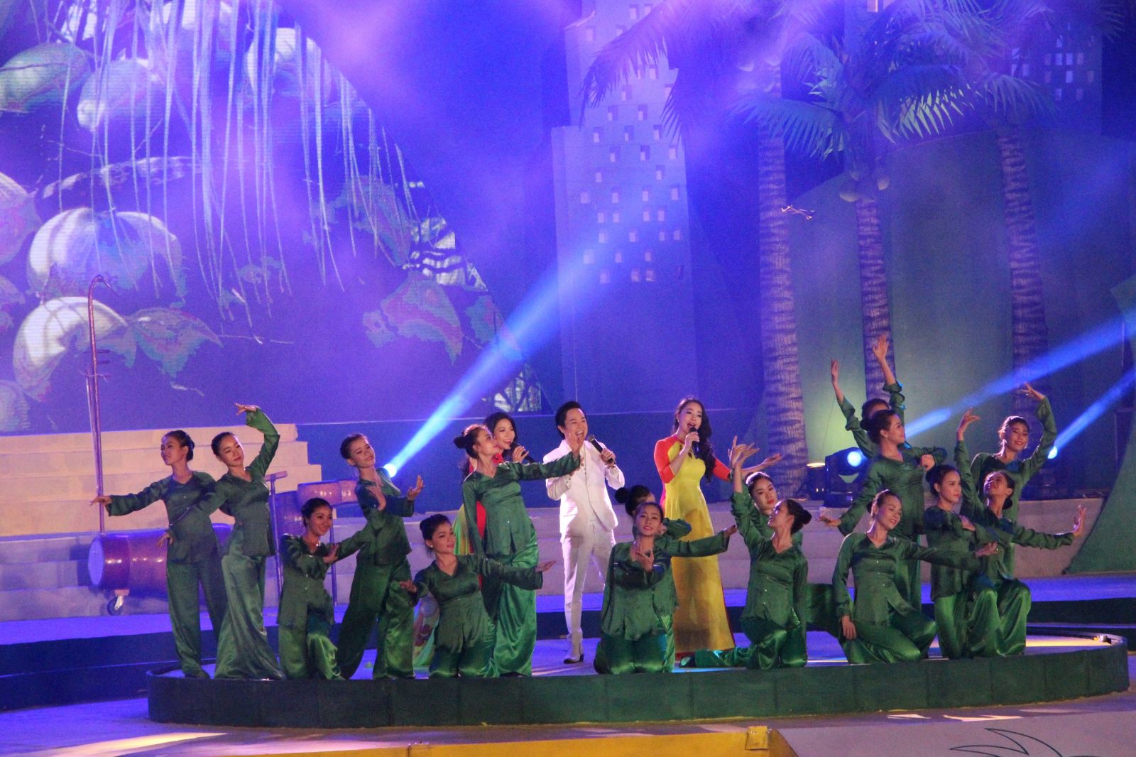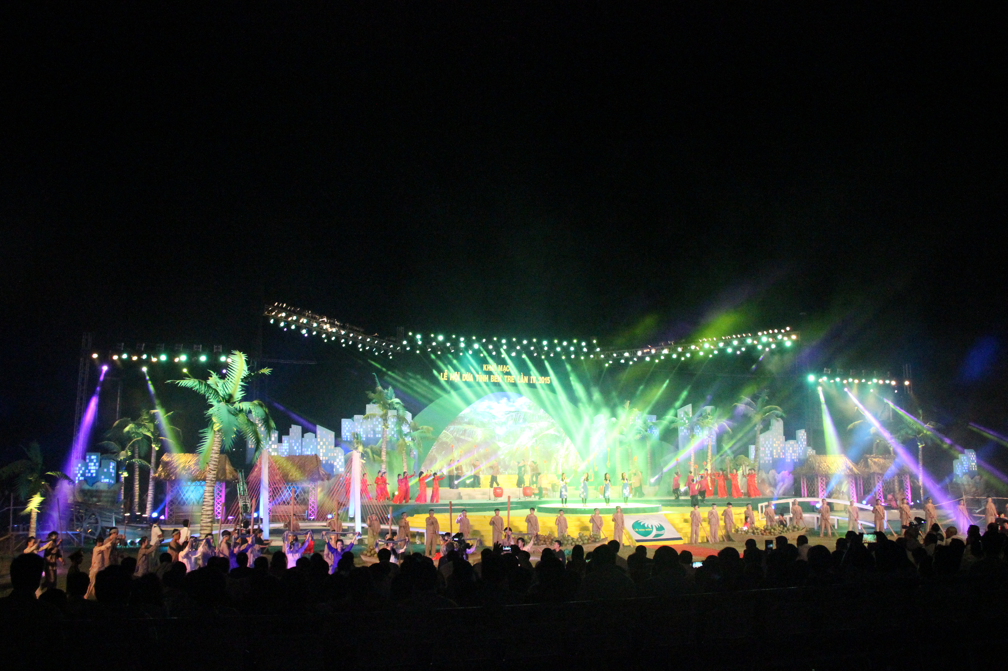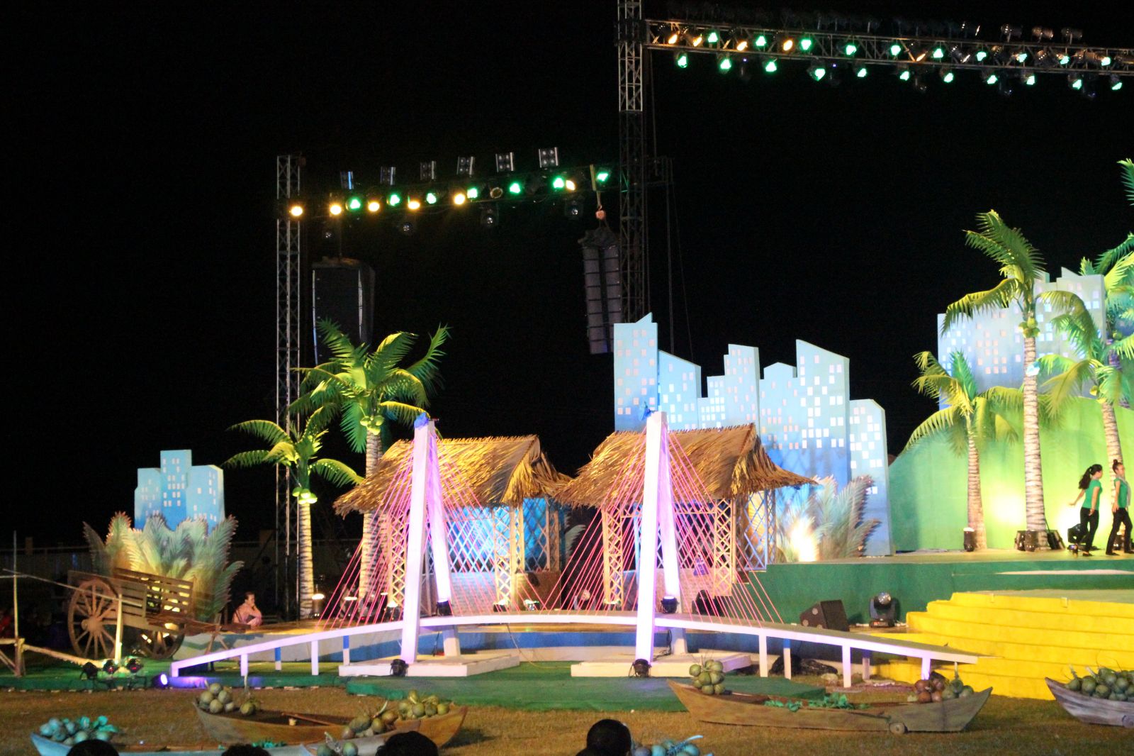 Sân khấu hoành tráng được lấy ý tưởng từ dừa, tái hiện chân thực khung cảnh bạt ngàn dừa xanh của miền đất Bến Tre và hình ảnh sông nước đặc trưng của Miền Tây chân chất. Các chi tiết nhỏ như gian nhà mái lá, cầu tre, xuồng ba lá, … được đầu tư kỹ lưỡng giúp không gian thêm sinh động. Xanh lá được sử dụng làm tone màu chủ đạo, tạo nên hình ảnh xanh mát, tươi mới, đồng thời cũng mang ý nghĩa của sự phát triển, hy vọng theo chủ đề của lễ hội.
